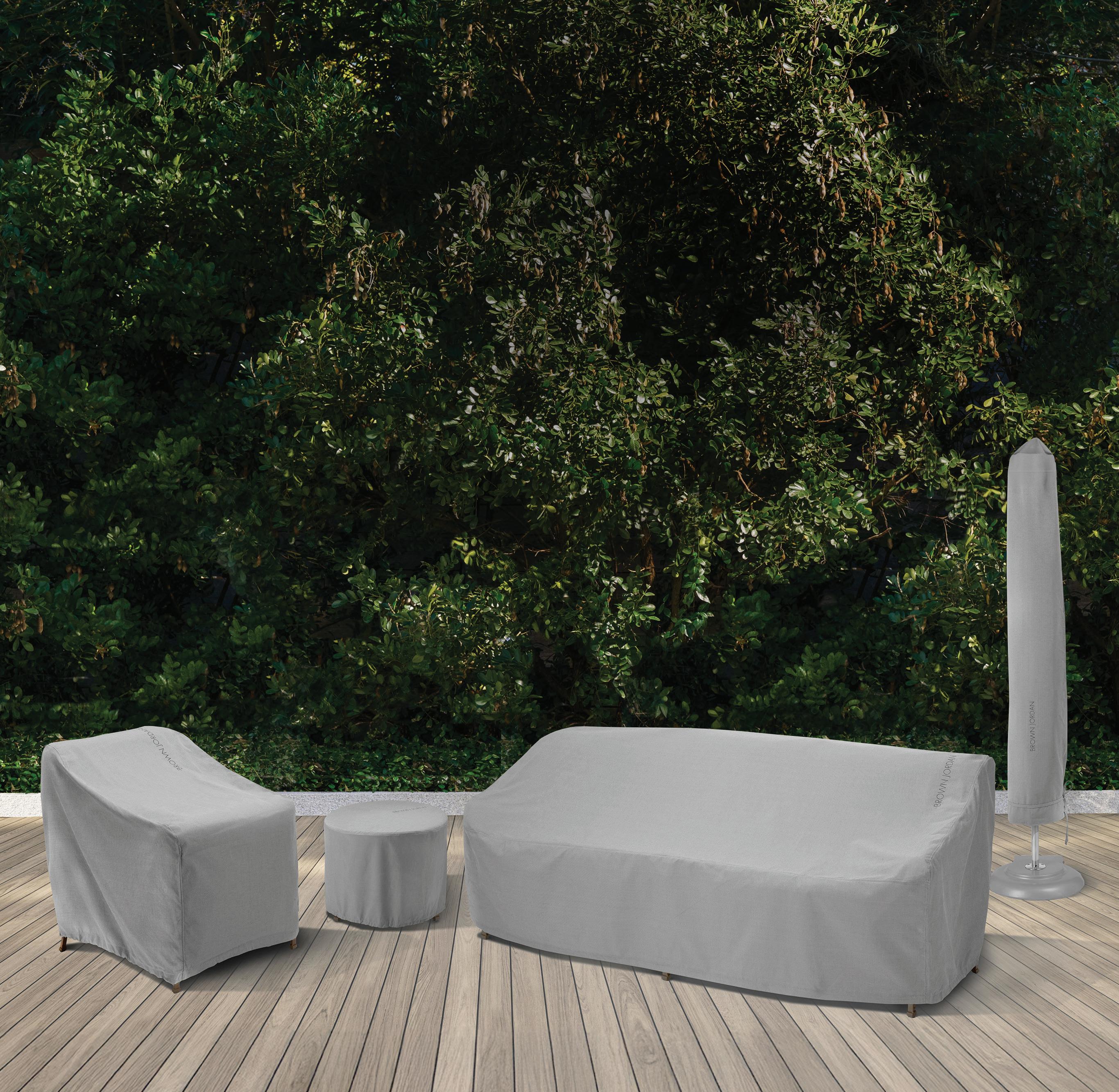 Protect your furniture from the elements with durable covers fit for each and every piece, available in a neutral color with embroidered branding. Covers are sold separately.
