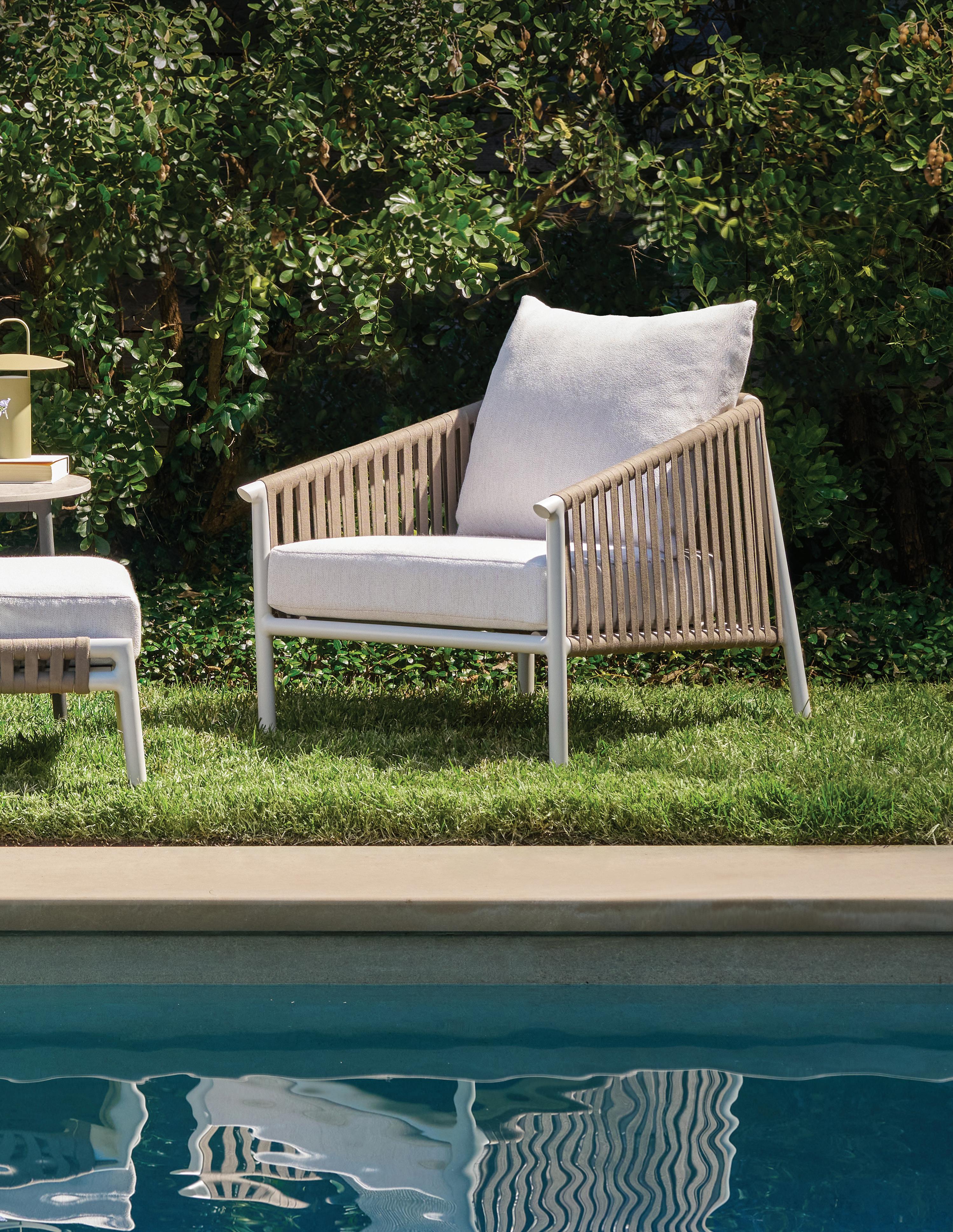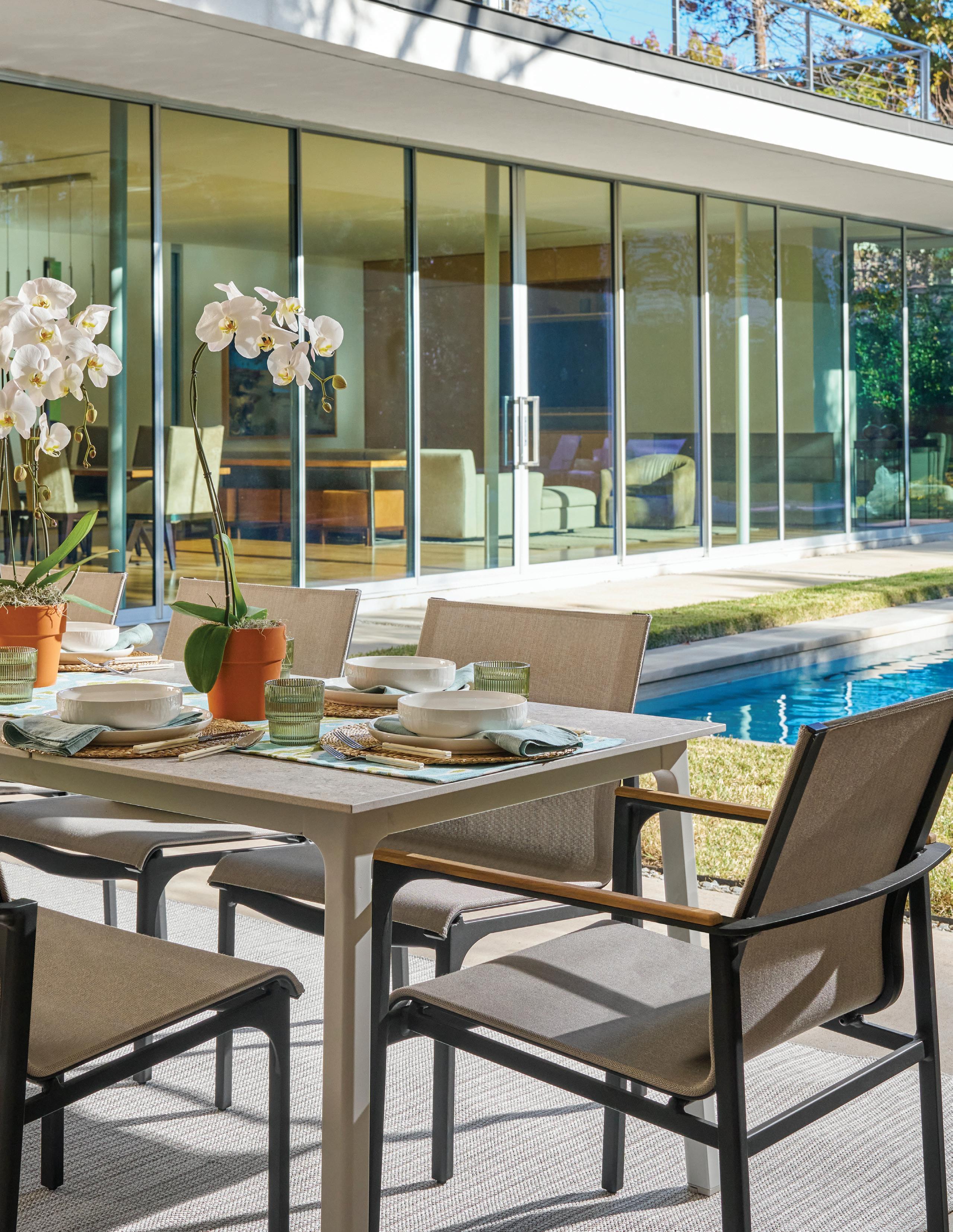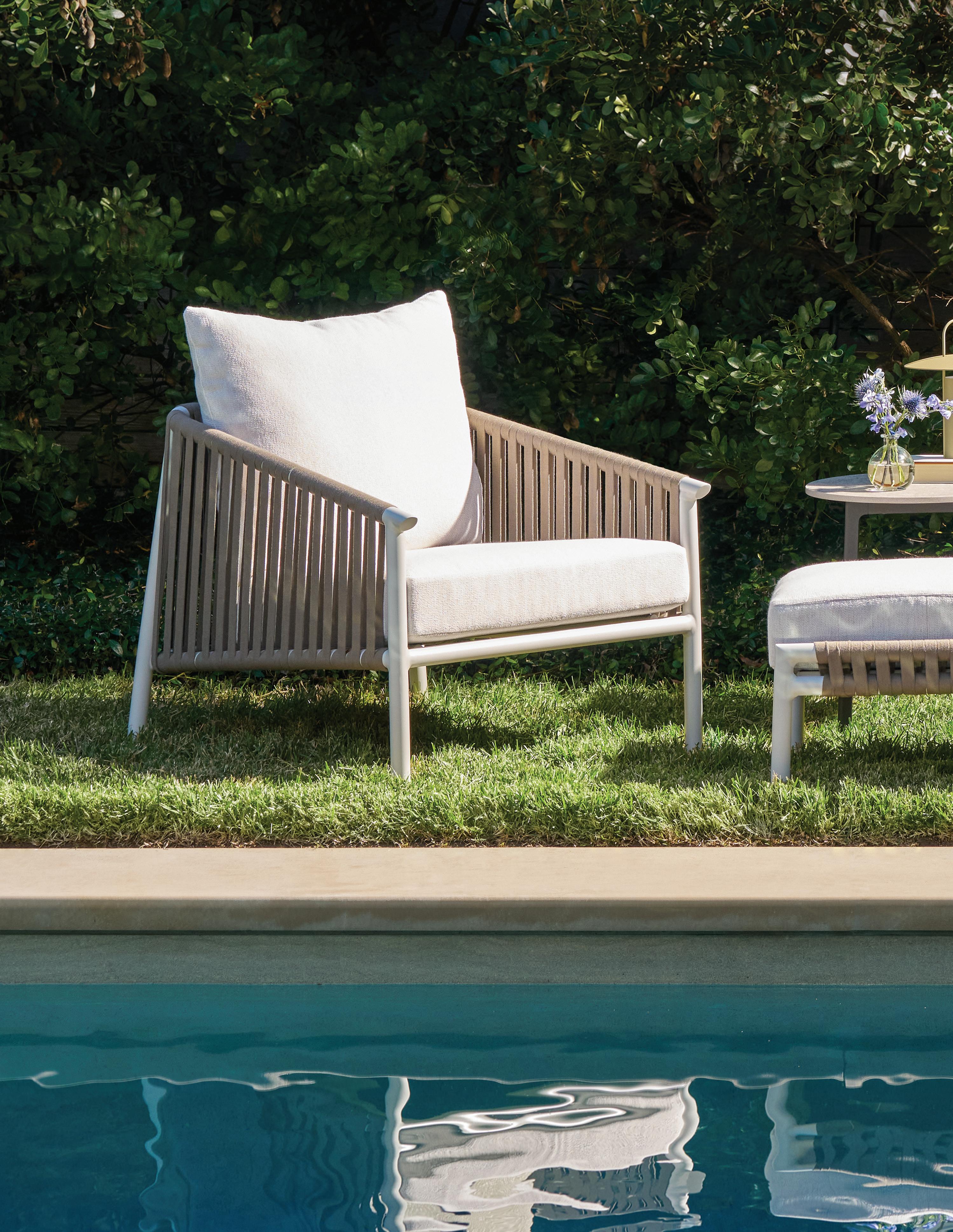 The Kravet x Brown Jordan collection offers a cohesive range of outdoor furniture featuring a mix of innovative designs and classic touches, incorporating advanced materials and finishes designed to withstand the elements. Suitable for a myriad of uses, from dinner parties on the deck to sunning by the pool, this partnership unites industry icons with a reputation for quality and excellence.