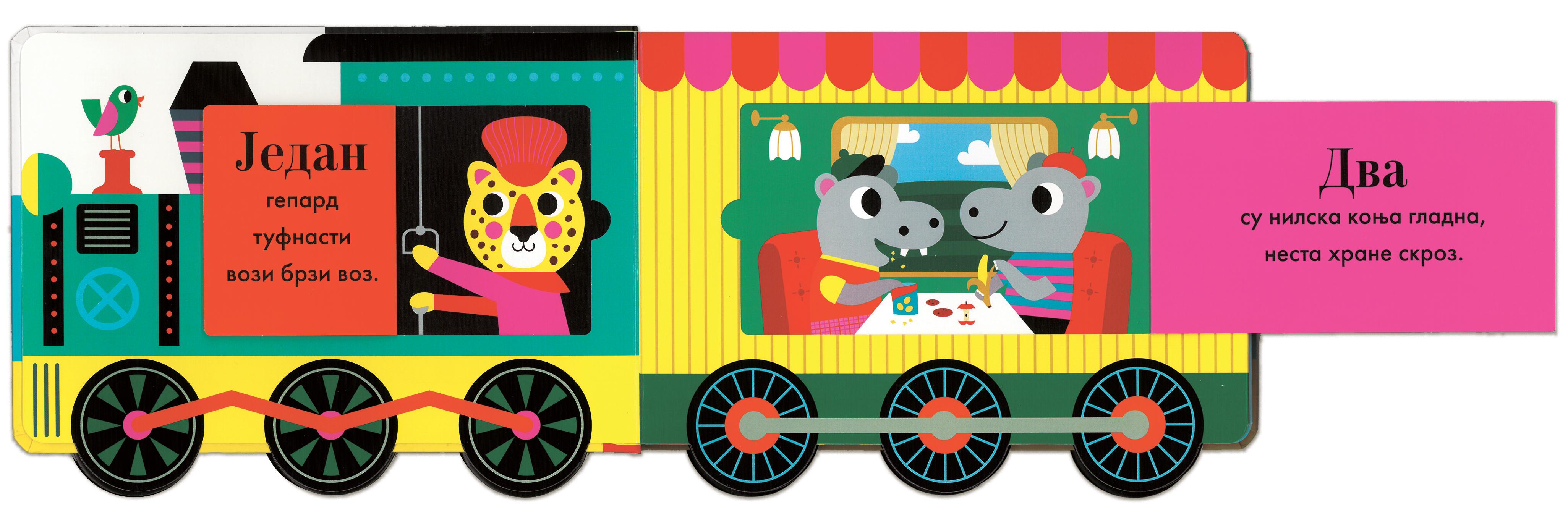 Uskočite svi u BROJOVOZ! Velika harmonika-slikovnica s preklopima sadrži neobične ilustracije i rimovane stihove pomoću kojih će mali čitaoci lako naučiti da broje do deset. I ne samo to! Kada se rasklope sve stranice, ova knjiga postaje vozić za igranje!