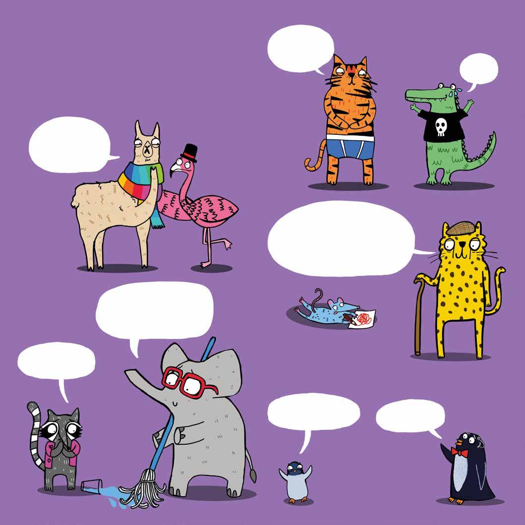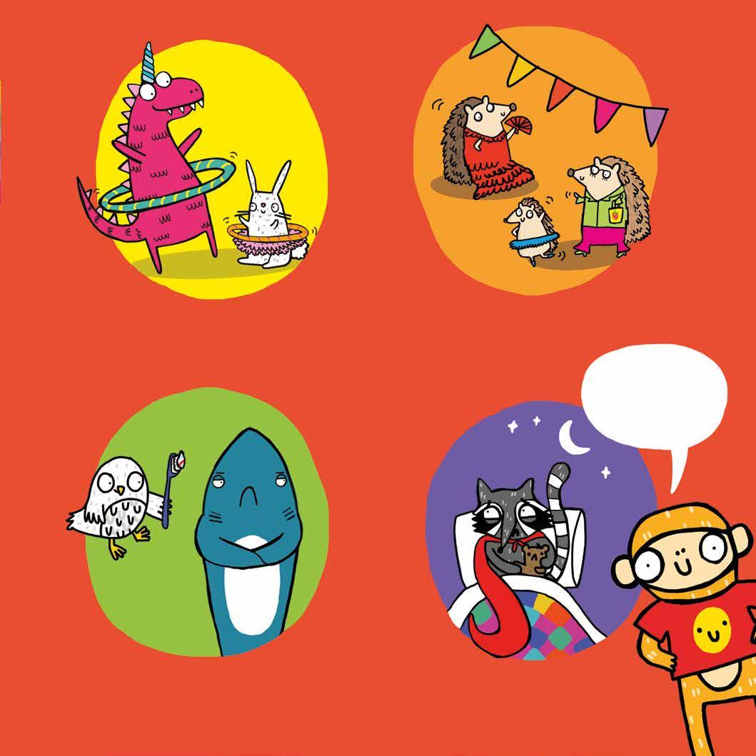 Само полако! Заборавио сам књигу! Ја ћу ти је позајмити! Можеш ти то! Је л’ ти треба помоћ? Шта ТЕБИ помаже да се мање бринеш? И ја! Понекад се бринем. Баш као и ја! Тада ми се чини као да имам лептириће у стомаку. Можеш помоћи другима када су забринути. Сви се понекад осећамо забринуто. ВЕЧЕ Т А ЛЕНАТА