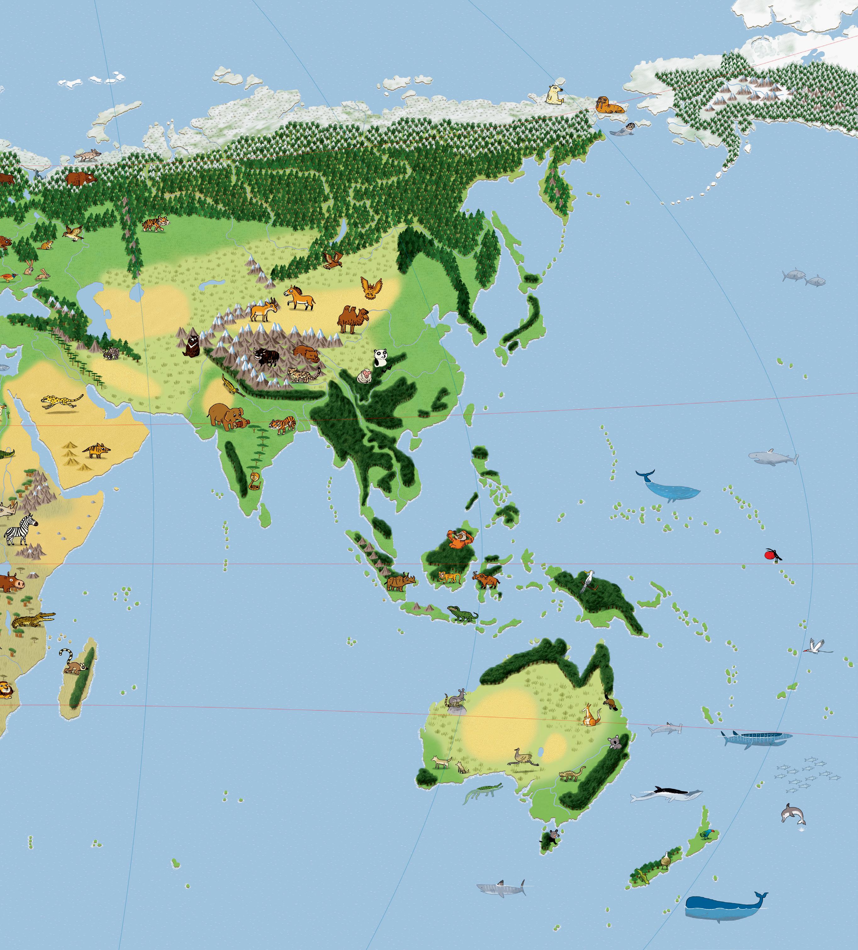 Ovaj izvanredno ilustrovani atlas životinja namenjen je deci od 6 do 10 godina. Karte koje prikazuju u kojim oblastima žive pojedine životinjske vrste i ilustracije koje dočaravaju život životinja u različitim godišnjim dobima pomoći će deci da upoznaju životinje svih kontinenata i saznaju kako one žive.