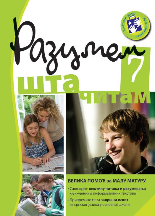 РАЗУМЕМ ШТА ЧИТАМ Припреми се за полагање завршног испита! •• Обнови градиво. •• Провери своје знање. •• Вежбај решавајући различите типове задатака. •• Реши задатке из различитих области (421 задатак основног, средњег и напредног нивоа). •• Провери своје одговоре – погледај решења на крају ове збирке. Аутори: Александра Станић, Милорад Рикало, Саша Гламочак, Славка Јовановић СРПСКИ ЈЕЗИК, ЗБИРКА ЗАДАТАКА ЗА ЗАВРШНИ ИСПИТ Додатни материјали