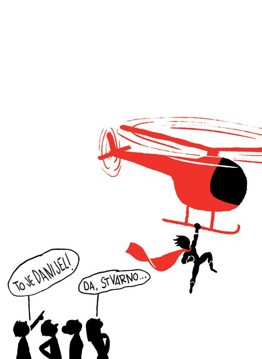 Mogu da zamislim scenu: izlazim iz helikoptera s plaštom, vetar mi mrsi kosu, a moji drugari gledaju uvis i pokazuju prstom ka meni: „To je Danijel!“