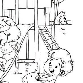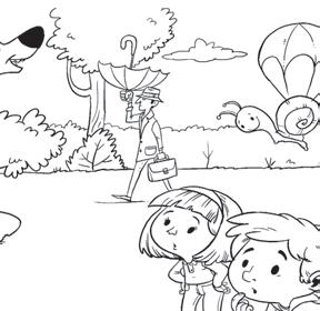ILUSTRÁTOR ÚMYSELNE UROBIL NIEKOĽKO CHÝB, KTORÉ ZMÝLILI HELENKU A RASTISLAVA. POMÔŽ IM NÁJSŤ PÄŤ CHÝB A VYFARBI TIE MIESTA NA OBRÁZKU. OBRÁZOK MÔŽEŠ DOPLNIŤ.