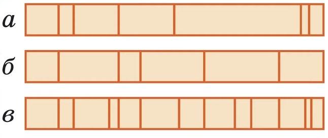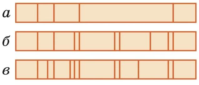 атомарного водню? молекулярного водню? Яким є спектр сильно стисненого водню? Розріджений атомарний водній – лінійчатий спектр. Молекулярний водній – смугастий спектр. Сильно стиснутий водній – суцільний спектр. Вправа 37.2. На рис. 1 подано лінії спектра поглинання Гідрогену (а) і двох сумішей газів (б, в). У якій суміші є