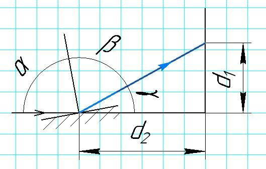 горизонтально, падає на вертикальний екран. Коли на шляху променя розташували плоске дзеркало, світлова пляма на екрані змістилася на 20 см вгору. Визначте кут падіння променя на дзеркало, якщо відстань від дзеркала до екрана 40 см. Дано: ����1 = 20 см ����2 = 40 см Розв’язання: ������������ = ����1 ����2 = 20 40 = 1 2 → ���� = 26,6° ���� + ���� + ���� = 180°; ���� = ����→���� + ���� + ���� = 180°; 2���� + ���� = 180°; ���� ? ���� = 180 ���� 2 = 180 26,6° 2 = 76,7° Відповідь: ���� = 76.7° Вправа 25.5. Скориставшись принципом Ферма, визначте, яким шляхом краще рухатися господині, щоб якнайшвидше набрати води в річці та загасити багаття (рис. 1). Принцип Ферма стверджує, що оптична довжина реального проміння що проходить між двома точками, менша за оптичну довжину будь-якої іншої кривої, яку можна провести між цими двома точками. Треба відкласти т. В1 дзеркально до берега річки.