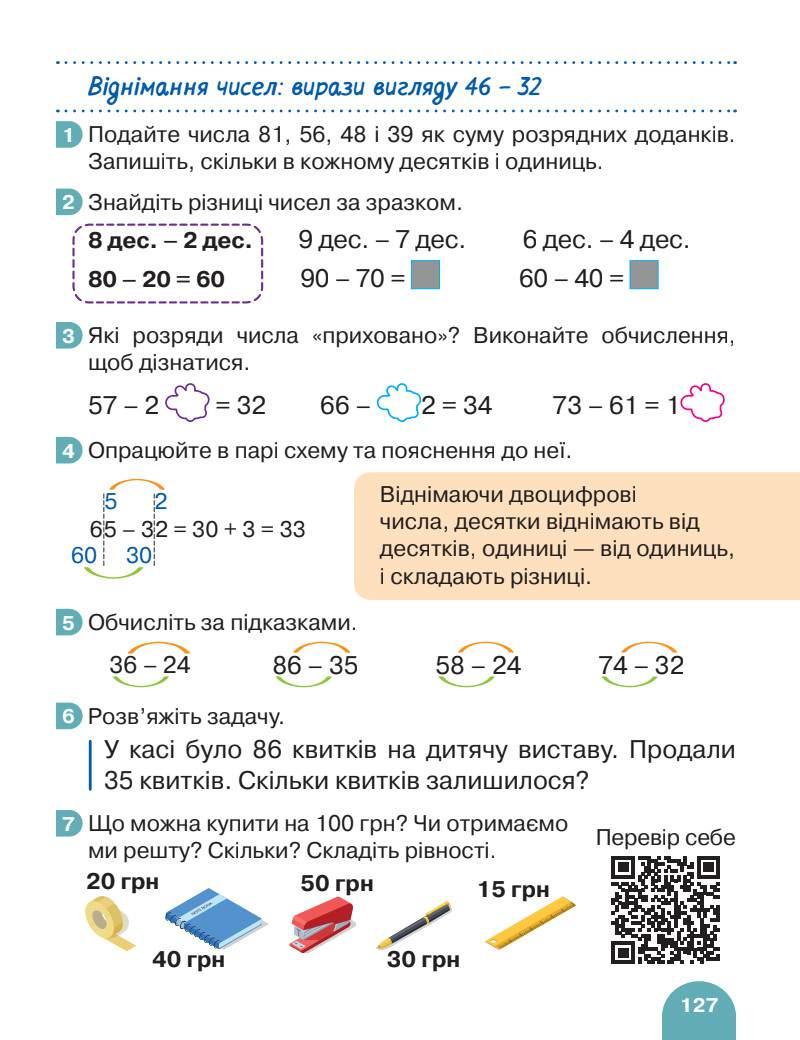 2 Пригадайте порозрядне віднімання. Обговоріть зразки.