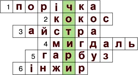 2) Цвяшок, лижвяр, духмяна, буряк, мавпячі, потьмянів. Ключ: Краків.