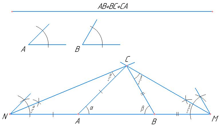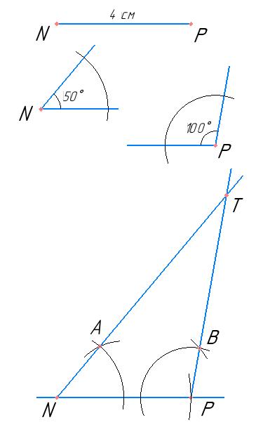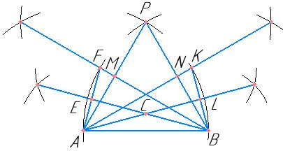 у точці А: MA, BA, NA; 4) відрізки з кінцем у точці В: AB, MB, NB.