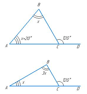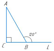 1) Нехай ∠ABL = 120° зовнішній кут ∆ABC, у якого ∠C = 90°.