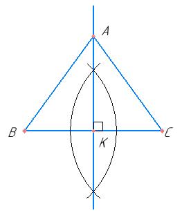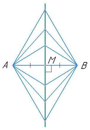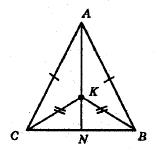 точок, рівновіддалених від кінців цього відрізка. Отже, пряма, що містить висоту (і водночас медіану, бісектрису) до