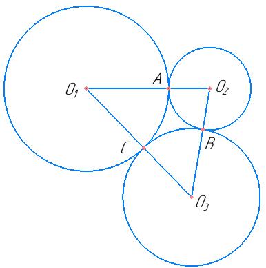 3) P∆OO1O2 = OO1 + OO2 + O1O2 = (OK – KO1) + (OL –L) + O1O2 = R – r + R – r + 2r = 2R.