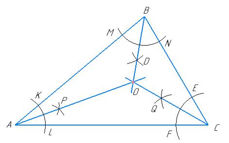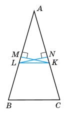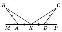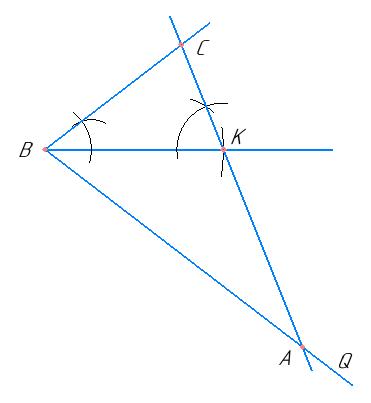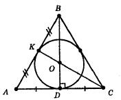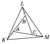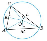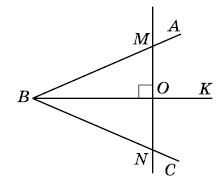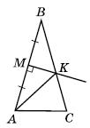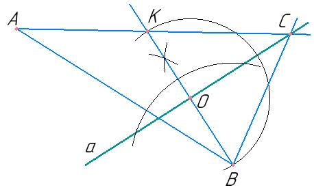 3) CO висота і медіана ∆BKC; тому ∆BKC рівнобедрений. Отже, CO бісектриса кута ACB; тобто пряма а містить бісектрису трикутника ABC.