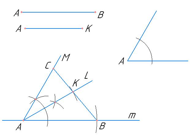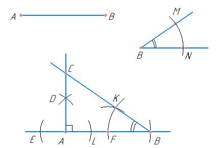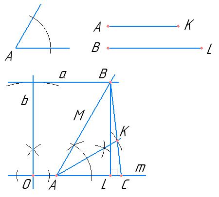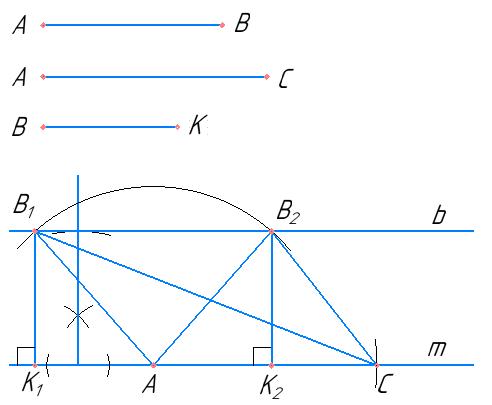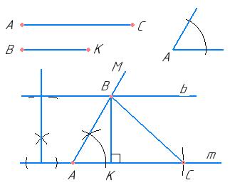 7) будуємо BL⊥АС; 8) ∆ABC шуканий трикутник.
