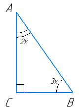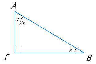 Тоді х + 2х = 90°; 3x = 90°; x = 30°.