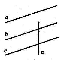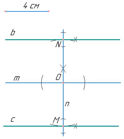 3) Через точки M і N проводимо прямі b і с, кожна з яких перпендикулярна до n. Прямі b і с