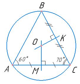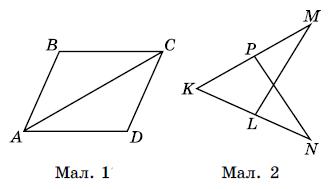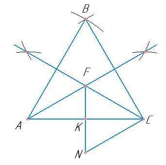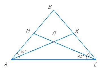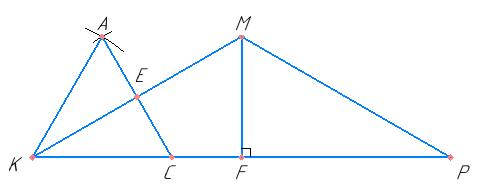1) ∠KAC < 60°; ∠KCA < 60°, тому ∠AKC > 60° і у ∆AКC кут AKC є найбільший. А отже, AC > AK.