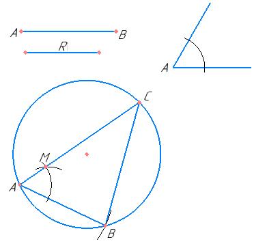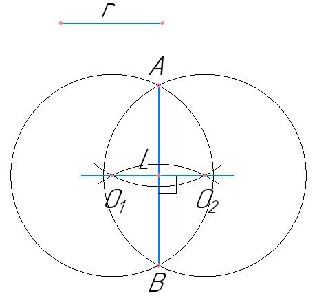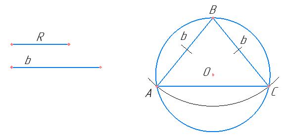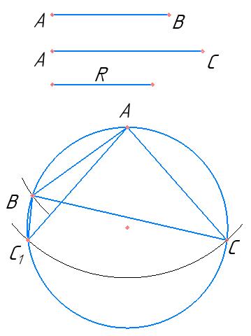 1) Будуємо рівнобедрений ∆OAC за стороною АС та радіусом r;