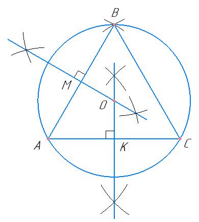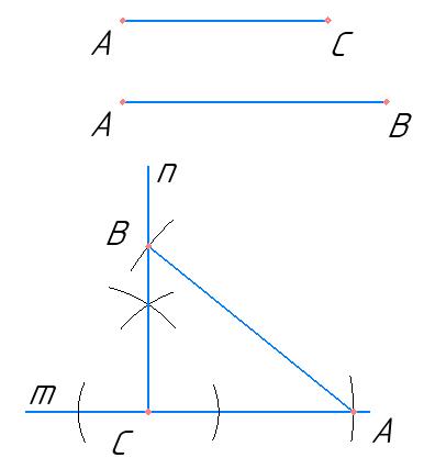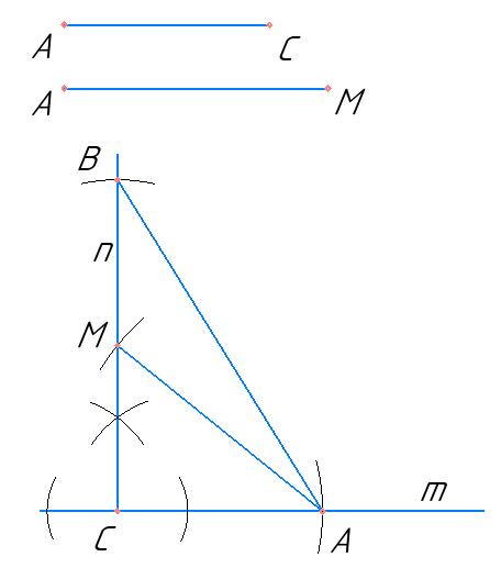 3) Будуємо серединний перпендикуляр відрізка АС;
