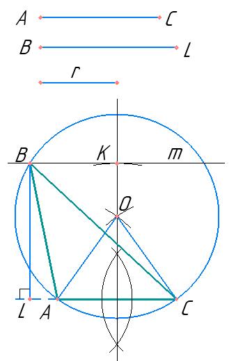 цієї сторони. Нехай АС сторона трикутника, BL –висота, проведена до АС, r – радіус