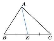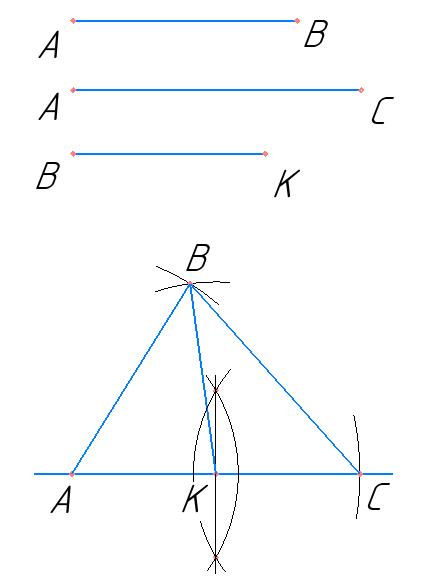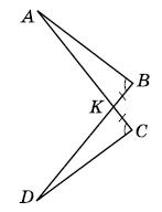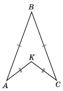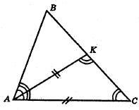 2) У ∆BKC за нерівністю трикутника: BK + KC > BC. 3) Оскільки AC = BC і AC > AK і BK + KC > BC, то AK < BK + KC, що й треба було довести.
