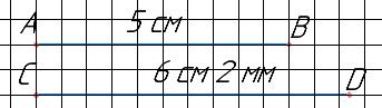 62 – 50 = 12 мм Відрізок AB < CD на 12 мм.