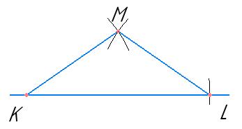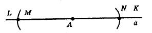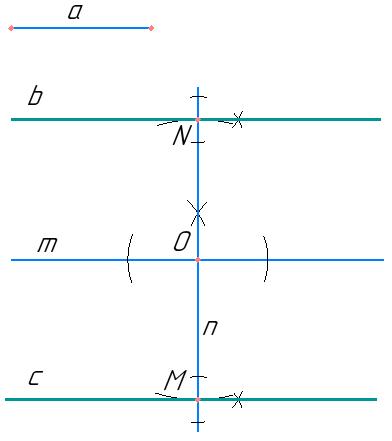 точці O; 2) Від точки K відкладаємо на прямій n два відрізки довжиною а см: OM = ON = а см;