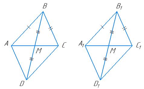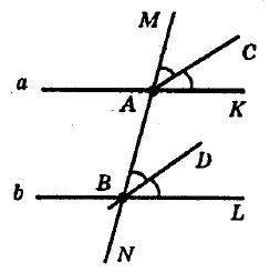 2) ∠CMD = ∠AMB (як вертикальні). Тому ∆CMD = ∆BMA (за першою ознакою). Тому ∠CDM = ∠MAB i CD = AB.