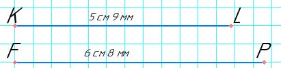 20. KL = 5 см 9 мм, FP = 6 см 8 мм. FP > KL, оскільки