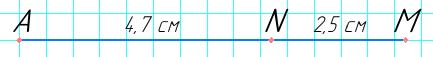 AN = AM – MN = 7,2 см – 2,5 см = 4,7 см.