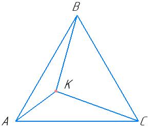 29. Усередині рівностороннього трикутника ABC узято довільну точку K. Доведіть, що AK < BK + KC.