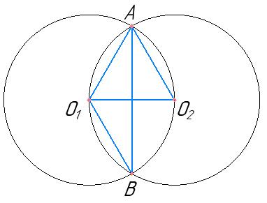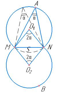 3) В ∆O1AO2: O1O2 = O1A = O2A = r. Тому AO1O2 рівносторонній, і ∠O1AO2 = 60°.