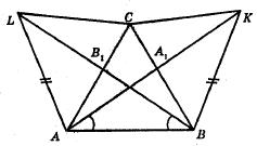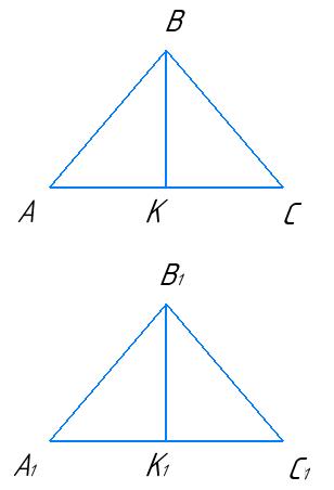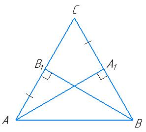 2) ∆ABB1 = ∆CAA1 (за двома катетами), тому AB = CA, ∠ABB1 = ∠CAA1 і ∠C = ∠BAB1.