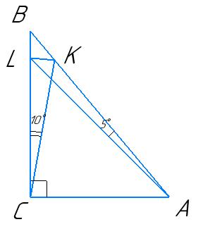 так, що ∠LAK = 5°, ∠LCK = 10°. Знайдіть ∠LKC.