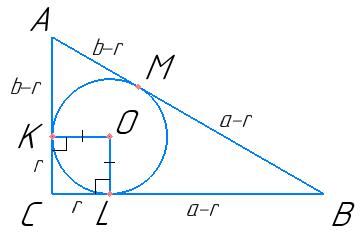 6) Маємо AM = AK = b – r ; BM = BL = а – r.