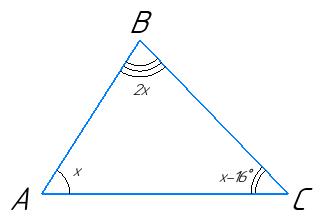 1) Позначимо ∠B = х, тоді ∠A = 2х.