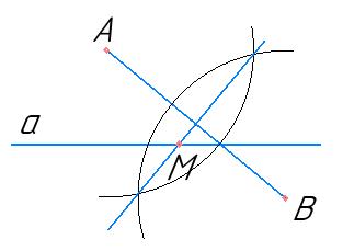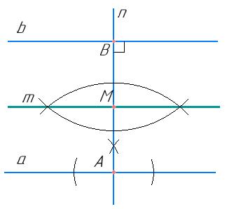 (побудувати пряму n⊥а і n⊥b, М – середина відрізка AB).