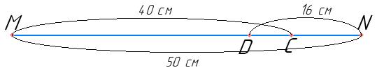 30. 1) CN = MN – MC = 50 см – 40 см = 10 (см) 2) CD = ND – CN = 16 см – 10 см = 6 (см)