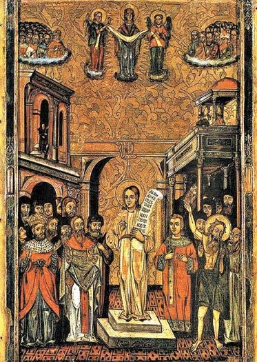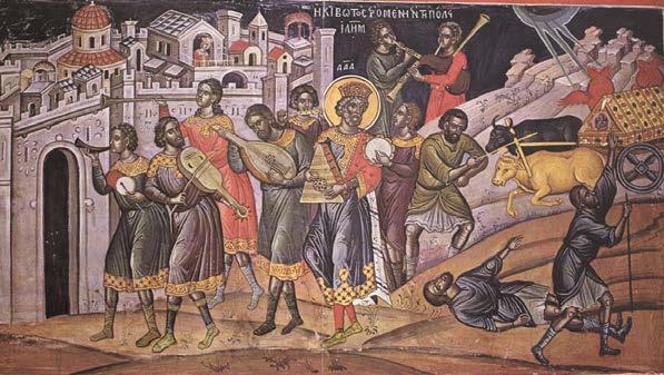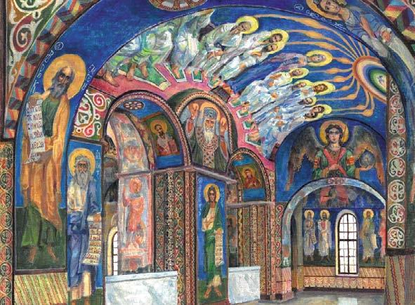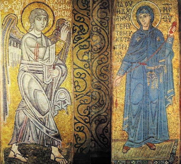 Образотворче: фрески й мозаїки з біблійними сюжетами та образами, іконопис.