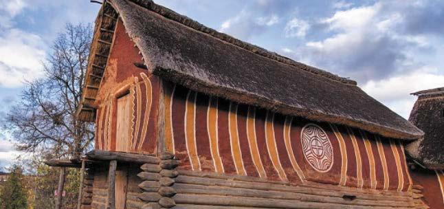Ознаки мистецтва мала й архітектура трипільців. Традиційно будинок був зведений із брусів, поставлених сторч, його стіни обмазували зовні та зсередини грубим шаром