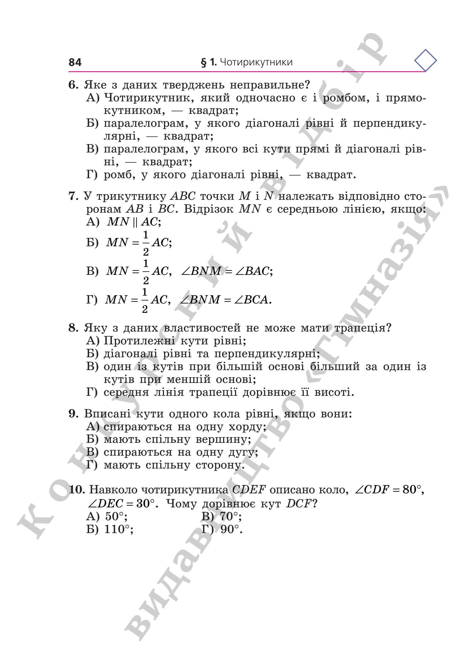 Геометрія 8 клас Мерзляк 2025