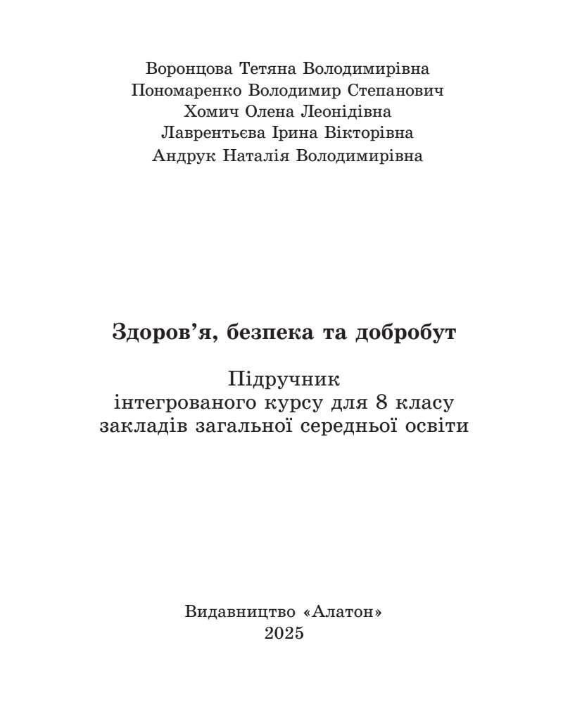 Здоров'я, безпека та добробут 8 клас Воронцова 2025