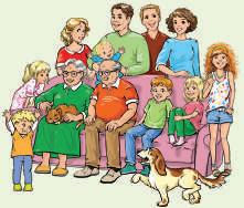 Paying attention to visual details. Identifying and naming members of a family. Introducing friends. Asking about people. Creativity: drawing, making puppets, acting out, singing, saying chants