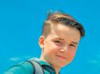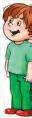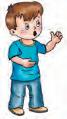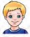 This is my friend Ted. He is not tall and he is slim. He has got short brown hair. Look, he is wearing a red T-shirt and blue jeans.
