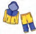 2) It’s spring. It’s cool and sunny. I’m in the park with my dad. I’m wearing a yellow sweater and brown trousers. My dad is wearing a black sweater and blue jeans. We are flying a kite.