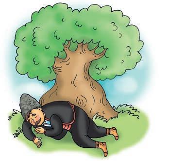 роса, и спря под ябълката. Опря тояжката си върху белия дънер, седна на търкулнатото вехто колело и се загледа към окъпаните светнали ниви.