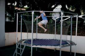 яку має тіло: катер пливе по озеру, прогинається сітка батута