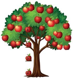 1. На малюнку зображено яблуко, що падає з дерева, у чотирьох положеннях. У якому положенні яблуко