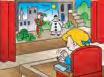 Учитель/Учителька пропонує учням послухати римування й назвати знайомі слова, що позначають: овочі, фрукти, їжу, потім обговорює з учнями, хто говорить і де відбувається сцена. На кожну