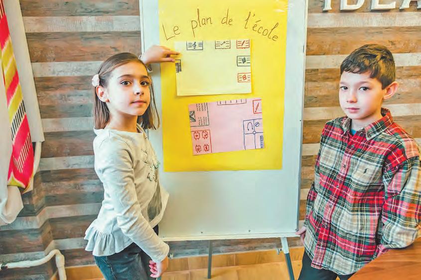 імена дітей, які відповідають, наприклад: «— Le cours de français. — J’apprends à parler français. — Le cours de danse. — J’apprends à danser.».